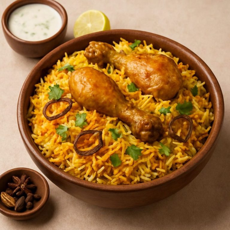 A bold and spicy biryani that symbolizes the vibrant culinary culture of Karachi.